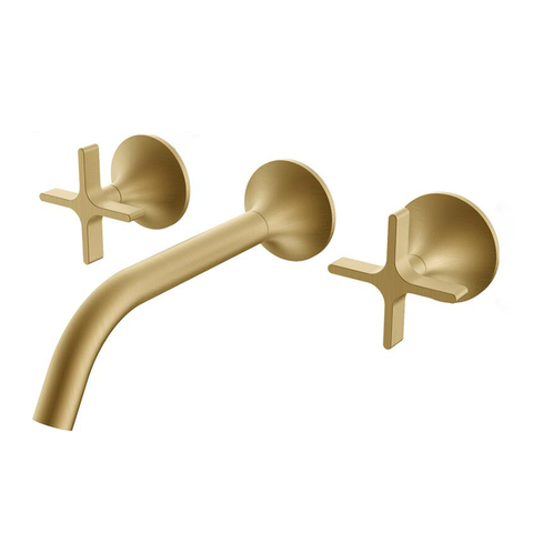 Torneira de bronze para banheiro com alças cruzadas montada na parede misturadora de lavatório dourada