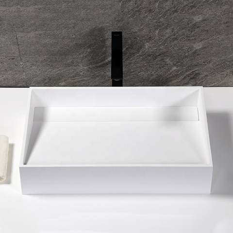 Trắng lưu vực cho phòng tắm chìm bề mặt rắn đá nhân tạo rửa tay lưu vực